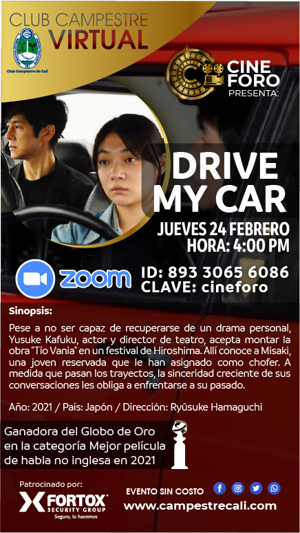 En nuestro “Cine Foro” se presentará el drama japonés “Drive My Car”, coescrito y dirigido por Ryūsuke Hamaguchi. Disfruten de esta película.