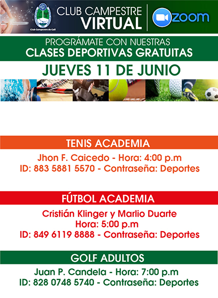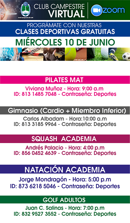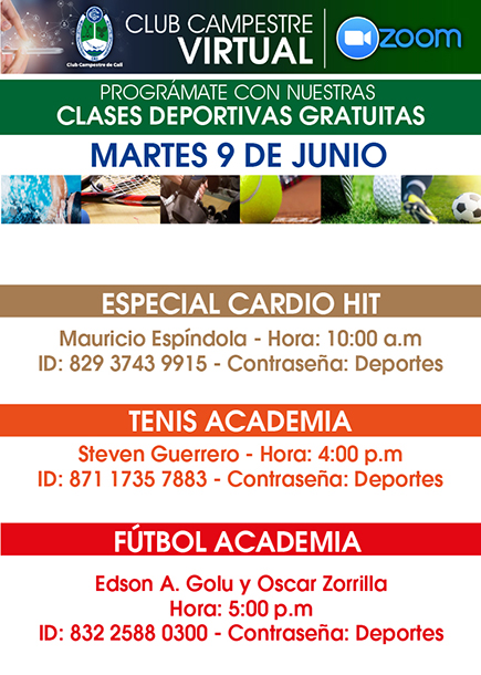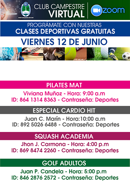 Clases deportivas virtuales del 8 al 13 de Junio