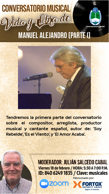 Hoy en nuestro ‘Conversatorio Musical’ tendremos la vida y obra del compositor y español, Manuel Alejandro. 🇪🇸 Disfrute de sus éxitos.