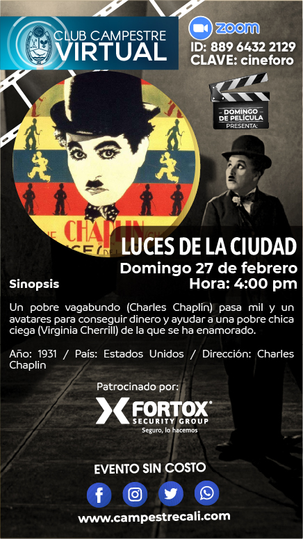 En nuestro ‘Domingo de Película’ se presentará la comedia de cine mudo “Luces de la Ciudad”, escrita y dirigida por Charles Chaplin. Disfruten de esta película.